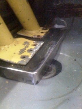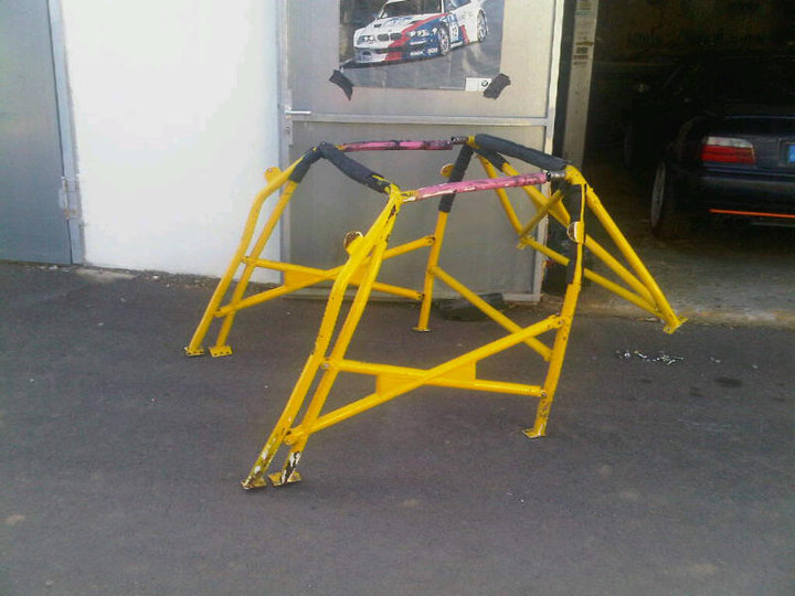 Die Käfigstreben an der A-Säule haben uns etwas mehr Kopfschmerzen bereitet als die hinteren. Das Problem lag daran das die Füße nach dem Einbau in der Luft gestanden, da die Karosse am Schweller sehr komisch gebaut sind. Um dieses Problem zu lösen haben wir uns Platten angefertigt die diesen Höhenunterschied ausgleichen. Nach der Anpassung der Platten musste der Käfig noch mal genau eingebaut werden. Jetzt hieß es nur noch Löscher bohren, Schweißstellen blank schleifen und die Platten an Ihre Bestimmungsposition ein schweißen. Zuletzt wurden alle Stellen noch mit dem Meißel und Flex sauber abgeschliffen.