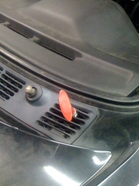Um später auch an RCN/VLN Rennen teilnehmen zu können, muss ein Notausschalter innen und außen angebracht werden. Dieser dient den Streckenposten und dem Fahrer dazu, dass das Fahrzeug so schnell wie möglich nach einem Unfall oder Brant auszuschalten. Der Schalter wird an die Zündung, Lichtmaschine und Batterie angeschlossen. Wenn der Schalter umgelegt wird, unterbricht er alle wichtigen Funktionen die den Motor am laufen lassen halten.