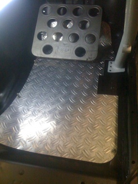 Jeder weitere Tag bringt uns näher an das Ziel Rennwagen. Heute wurden Riffelblech Fußstützen auf der Fahrer- und Beifahrerseite montiert. Einige Anpassungsarbeiten blieben uns dabei aber leider nicht erspart. Damit der Beifahrer sich später im Auto mit den Füßen besser abstützen kann wurde eine OMP Drittstütze eingebaut. An alle stellen wo das Riffelblech später an der Karosse schleifen oder in Berührung kommen kann wurde Kantenschutz angebracht.