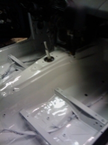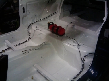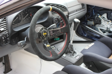 Da das Auto noch alltagstauglich sein sollte und ich eine Ablagemöglichkeit brauche, habe ich die Mittelkonsole und das Handschuhfach wieder eingebaut. In den Radioschacht wurden Öltemperatur, -druck und Amperemeter VDO Anzeigen eingebaut. Weil ich das Auto nach Vorschriften aufbaue, musste ich den Käfig mit Polsterung ummanteln. Die verstellbaren Sitzkonsolen habe ich auch eingebaut.