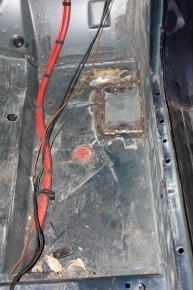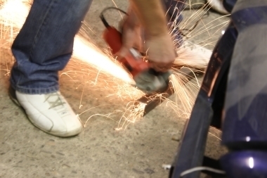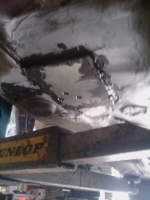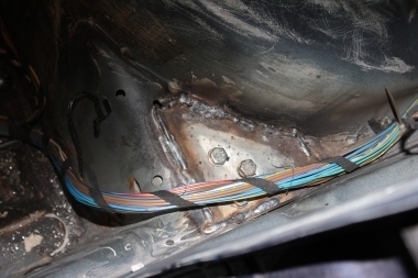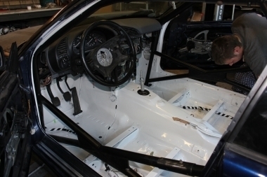 Das Schleifen des Innenraums erwies sich als langwierig! Dazu haben wir Verdünnung und ein Schleifpad benutzt. Der Käfigeinbau war eine große Herausforderung, da dieser nur aus drei Teilen besteht. Das komplette Kreuz ist ein Teil und die jeweiligen Seiten mit Flankenschutz sind jeweils nochmal ein Teil. Die Schwierigkeit bestand darin, den Käfig an der B-Säule auf dem Holm zu fixieren.Dies löste ich mit 4mm dicken Stahlplatten die wir auf dem Holm verschweißt haben. Da man vom Unterboden nicht an den Holm kommt, habe ich auch an die Rückseite der Stahlplatten Muttern an gepunktet.