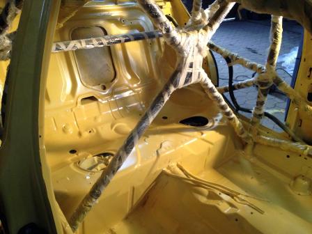 Rohr für Rohr kam in das Fahrzeuginnere, und ja, man kann sagen, dass Käfigbau ein Puzzelspiel für große Jungs ist. Es ist sehr wichtig, dass nur Personen die Rohre verschweißen die es wirklich können. Die Schweißnähte dürfen im Nachhinein nicht mehr geschliffen oder anderweitig verändert werden.