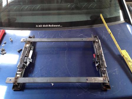 Von unseren zahlreichen Sitzkonsolenumbauten haben wir hier mal wieder eine neue Variante ausprobiert. Wir haben dazu die originalen Schiebekonsolen verwendet und 2 Flacheisen darauf angeschweißt.