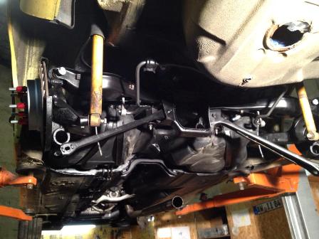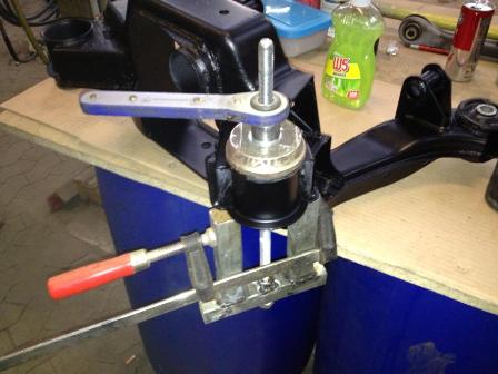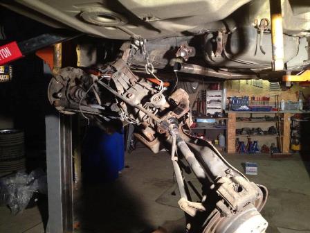 Damit der Rennwagen später eine gute Bodenhaftung hat, entschieden wir uns dafür, die komplette Hinterachse neu zu lagern. Dafür entfernten wir Auspuff, Differential und die Hinterachse selbst. Die Aufnahmen waren schon leicht in die Jahre bekommen, deshalb haben sie erst mal eine Rundum Pflege bekommen und mit zusätzlichen Blechen verstärkt. Die bekommt man im Internet oder bei seinem BMW Händler des Vertrauens. Um die Lager aus der Hinterachse heraus zu bekommen, haben wir uns ein eigenes Werkzeug gebaut. Wir können sagen, dass das sehr gut geklappt hat. Natürlich gibt es Spezialwerkzeug dafür zu kaufen, aber das hatten wir nicht.